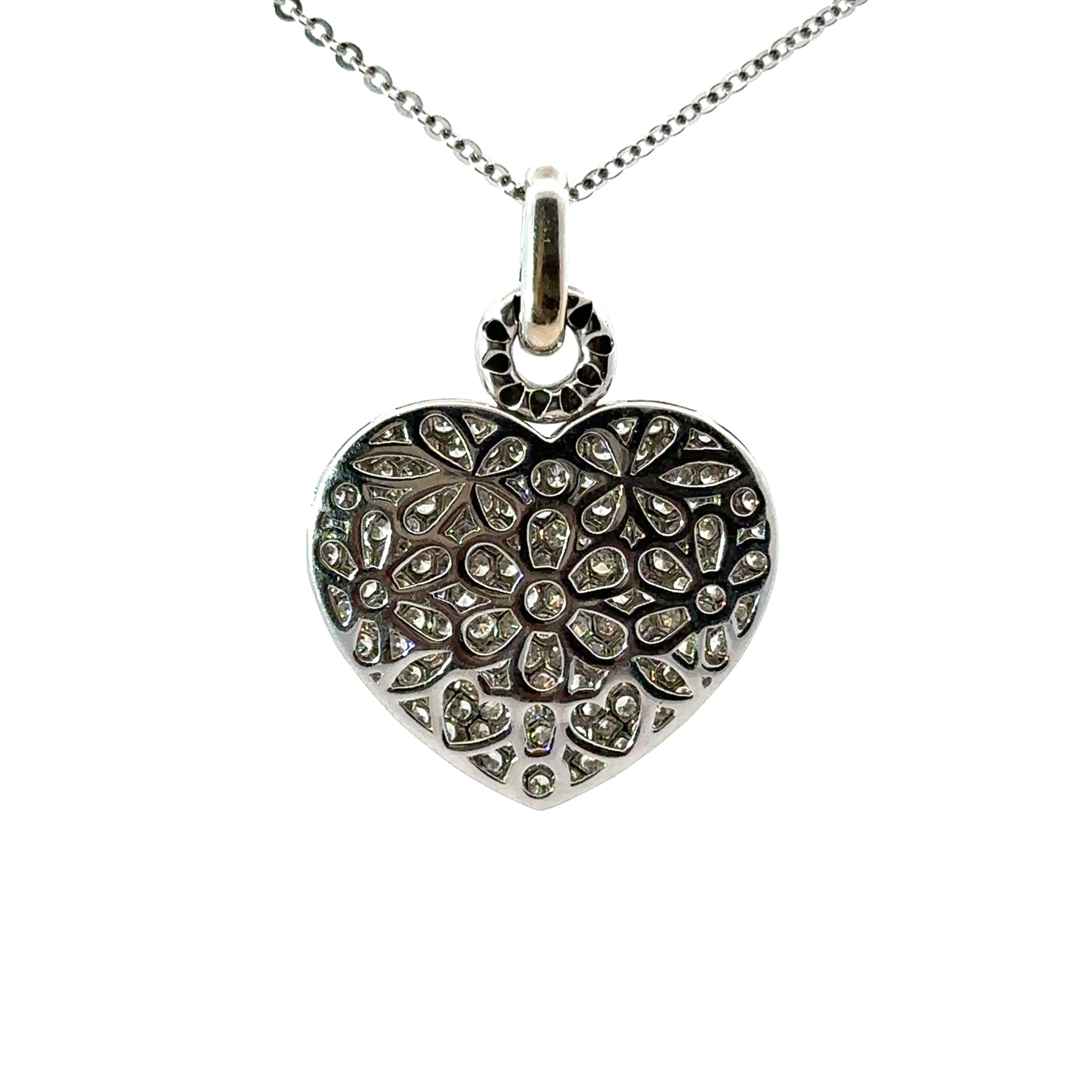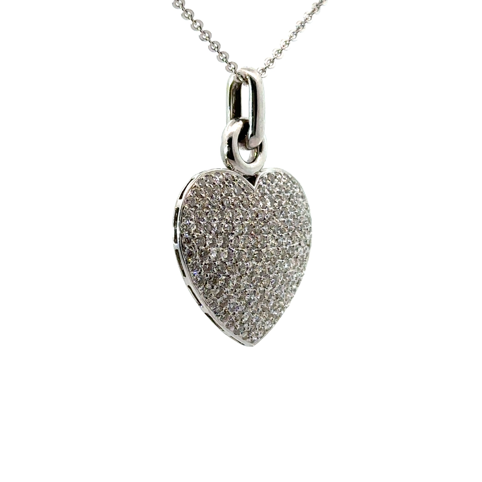 Wear your heart on your sleeve—literally! This stunning 14kt white gold pendant features a heart shape adorned with sparkling round brilliant-cut diamonds totaling 5 carats. The pave setting catches light from every angle, creating a dazzling display that's both romantic and undeniably chic. Perfect for celebrating love, marking special moments, or simply treating yourself to a piece that makes you smile every time you catch your reflection.