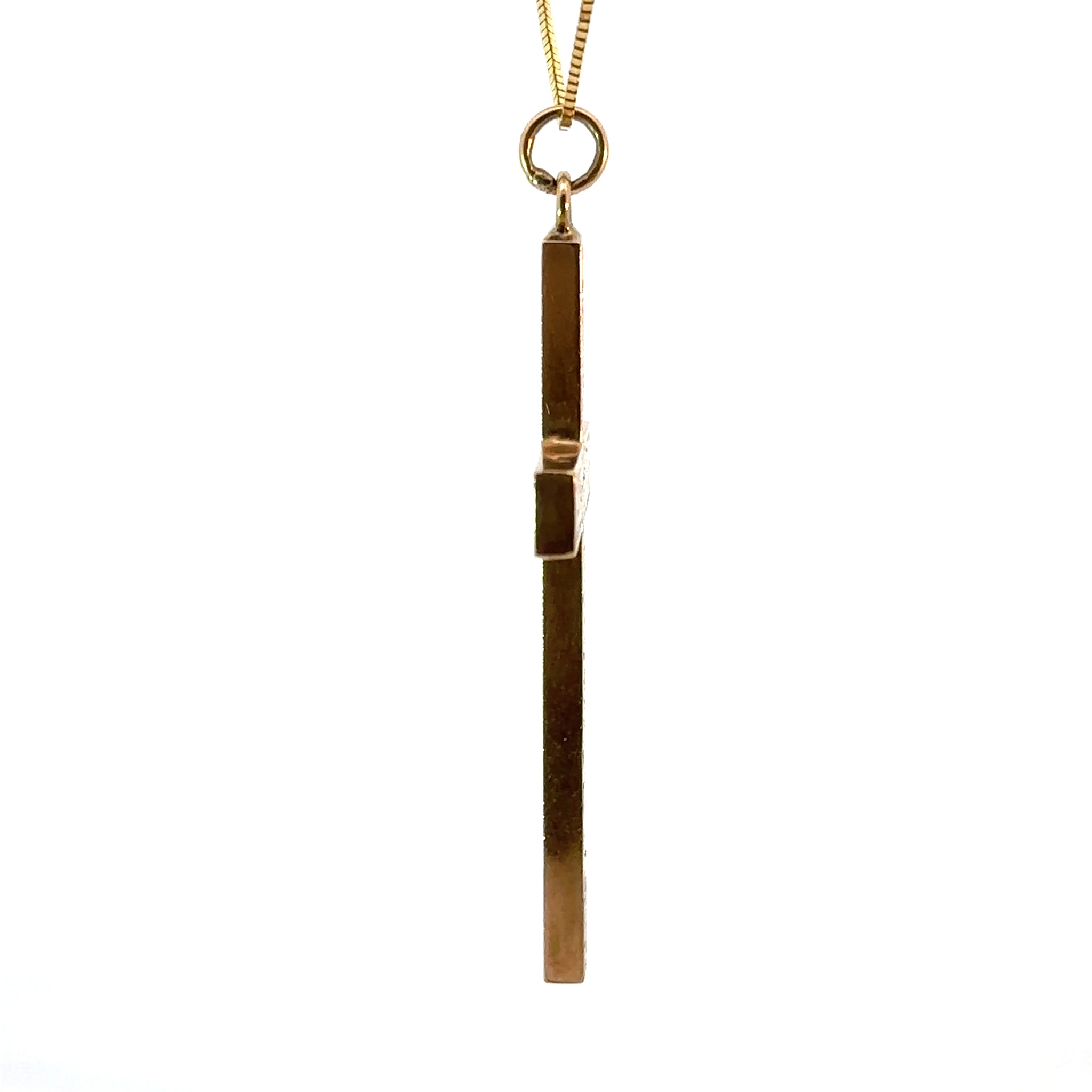 This charming Victorian-era cross brings timeless elegance to any collection. Crafted in 9kt yellow gold with intricate hand-engraved detailing, it showcases the ornate artistry of the period. Suspended on a delicate 14kt yellow gold chain, this piece combines vintage sophistication with wearable comfort. Perfect for those who appreciate heirloom-quality jewelry with character and history.