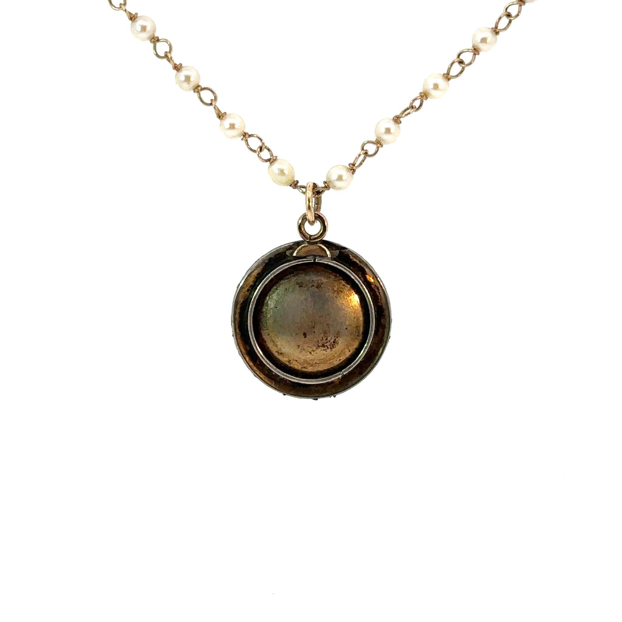 This exquisite Victorian-inspired pendant combines timeless elegance with artistic craftsmanship. Suspended from a delicate 24-inch 14kt yellow gold chain adorned with lustrous seed pearls, the centerpiece features a hand-painted portrait of a Victorian queen rendered in meticulous detail. Each piece captures the romance and refinement of the Victorian era, making it a distinctive statement for collectors and history enthusiasts. Perfect for layering or wearing solo, this heirloom-quality necklace brings sophisticated vintage charm to any wardrobe while serving as a conversation-starting accessory that celebrates classical beauty and fine artistry.