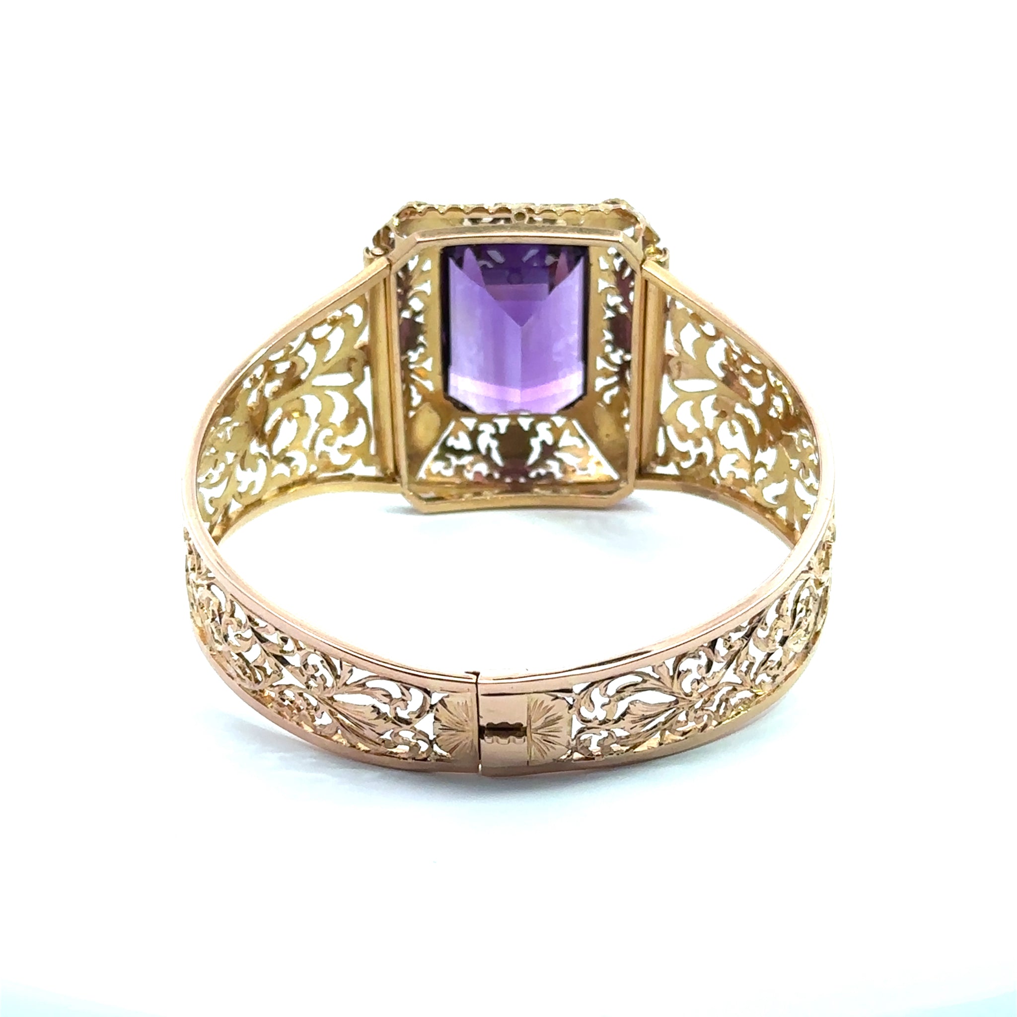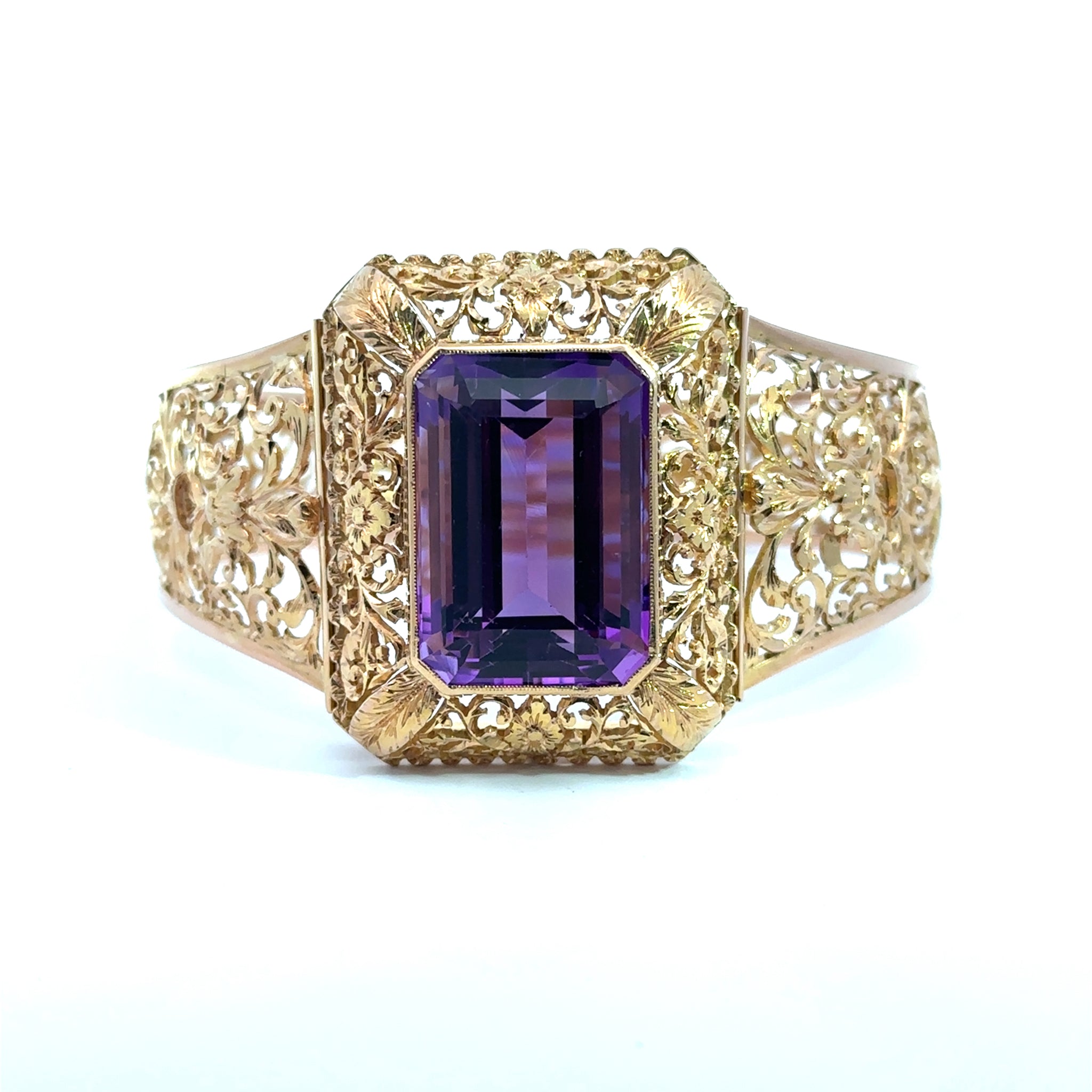 Experience timeless elegance with this Victorian 15k yellow gold filigree bracelet, featuring a stunning 30-carat amethyst centerpiece. The intricate filigree work highlights craftsmanship from a cherished era, while the rich purple amethyst adds a regal touch. Perfect for adding a refined statement to any outfit, this bracelet combines vintage charm with lasting beauty.